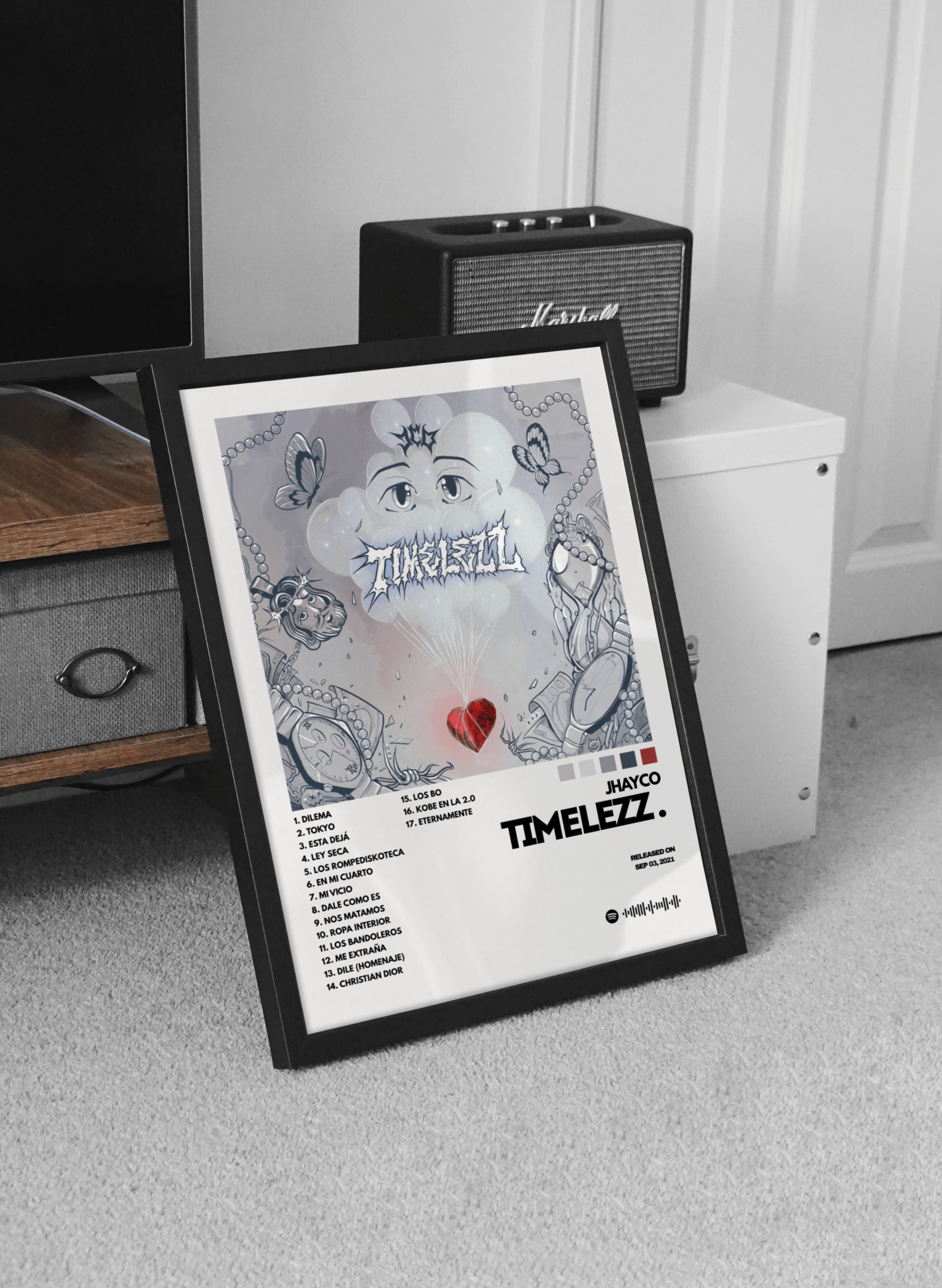 Enmárcalo y conviértelo en una pieza de arte que grite tu personalidad y tu pasión por la música urbana.
